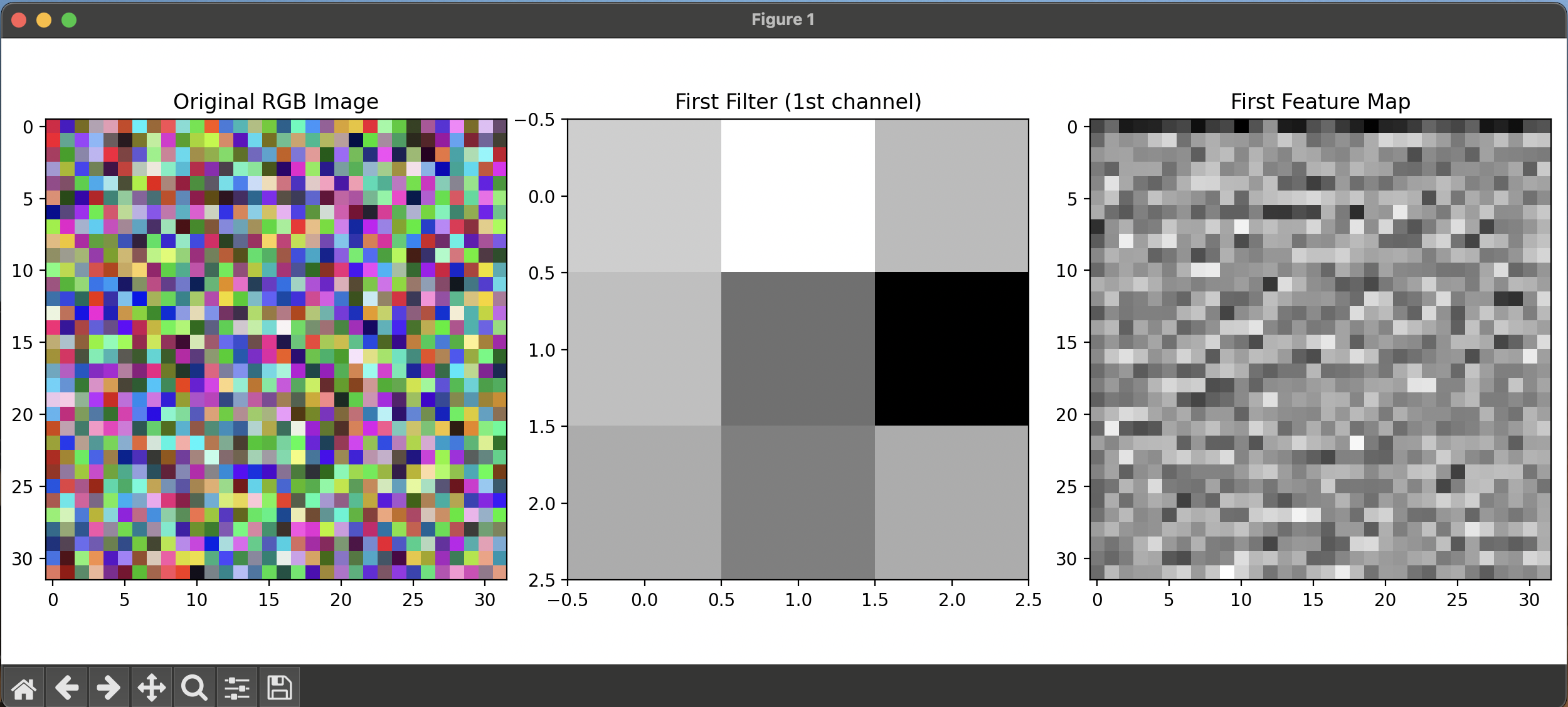 • 32 ×32 RGB 이미지에 16개의 3 ×3 필터를 적용하여, 각 필터가 RGB 3채널을 모두 고려하나의 특징맵을 생성한다.