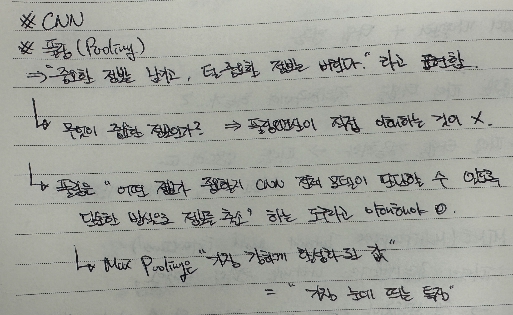 풀링은 '어떤 정보가 중요할지 CNN 전체 모델이 판단할 수 있도록 단순한 방식으로 정보를 축소"하는 도구라고 이해하는 것이 좋을 것 같다.